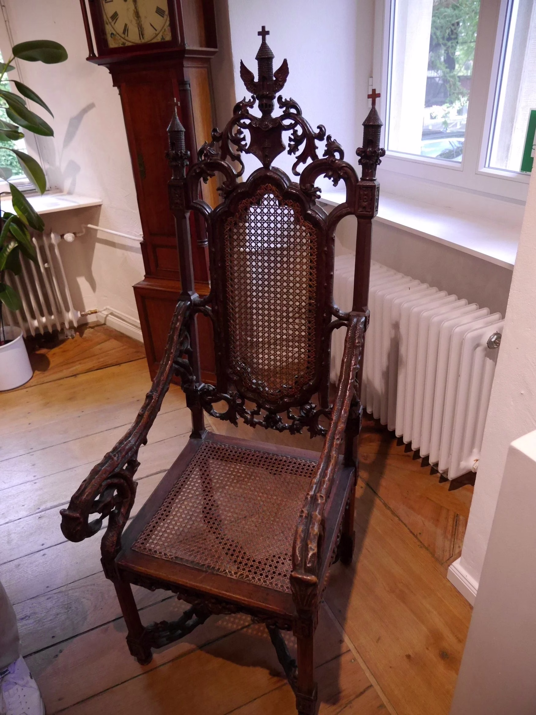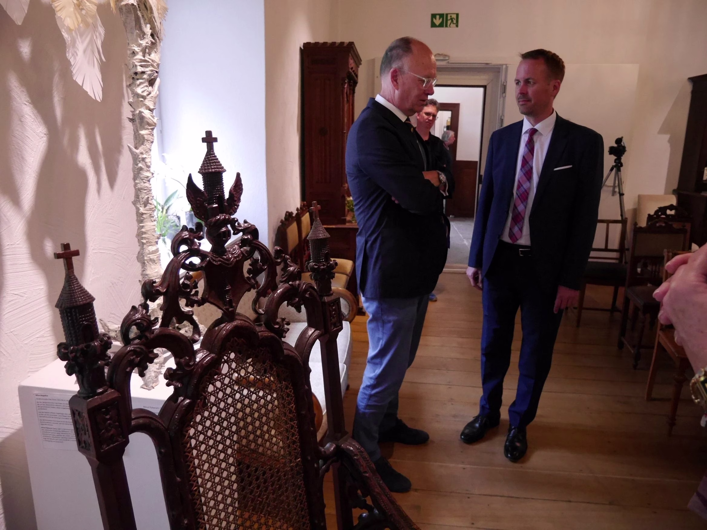 Er ist zurück! Nach über 60 Jahren ist jetzt der restaurierte Wappenstuhl der Familie von der Wenge zurück an seinen ursprünglichen Platz gekommen. Bei der Übergabe durch die Familie von Lambsdorff an den Haus Wenge Lanstrop e. V. erzählte Nikolaus Graf Lambsdorff ein wenig zu der Geschichte des Stuhls und warum es ihm jetzt wichtig war, dass dieser Stuhl wieder nach Lanstrop zurückkommt.