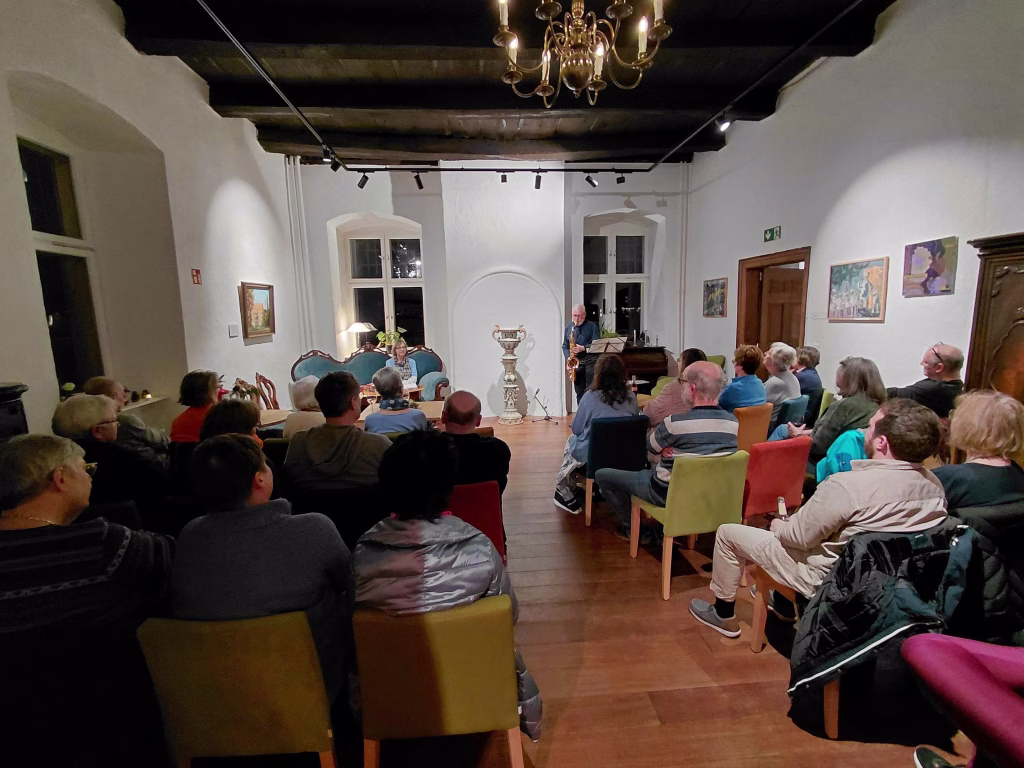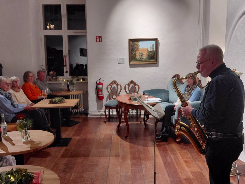 Den jazzig, fetzigen musikalischen Rahmen schaffte der Kabrettist (DIEDAKTIKER) aus Anröchte/Lippstadt, Hermann-Josef Skutnik, auf dem Saxophon mit Stücken wie zum Beispiel Imagine, Moon River, Sentimental Journey und vielen anderen. Es war für die Wengebesucher:innen eine gute Gelegenheit, dem vorweihnachtlichen Stress etwas zu entgehen.