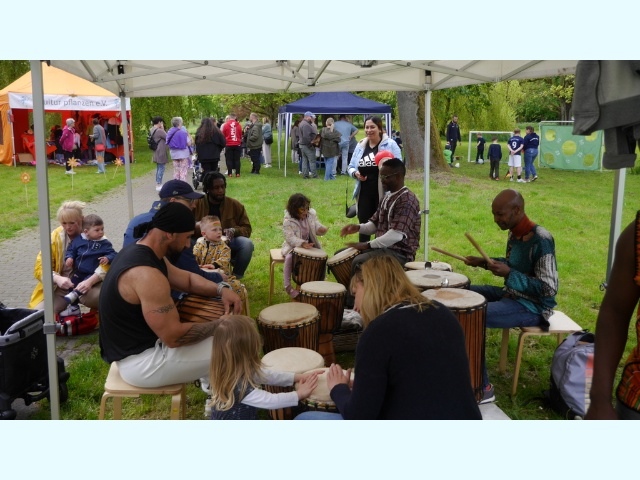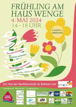 Lanstrop ist bunt und vielfältig und diese beiden Aspekte wurden eindrucksvoll beim Frühlingsfest an Haus Wenge bestätigt. Über 15 verschiedene Vereine, Gruppierungen und Verbände hatten sich zusammengetan, um gemeinsam das Nachbarschaftsfest DORTBUNT.nebenan zu feiern. Nach einem „verwässerten“ Start kamen mit der Sonne dann auch im Laufe des Tages nahezu 500 Menschen, um mitzufeiern. Eine Mini-Traktorfahrt durch den Wengepark, eine kleine Rassegeflügelausstellung, Torwandschießen, eine Tauschpflanzaktion, ein Trommelkurs und viele weitere Aktionen begeisterten dabei die kleinen und großen Gäste.