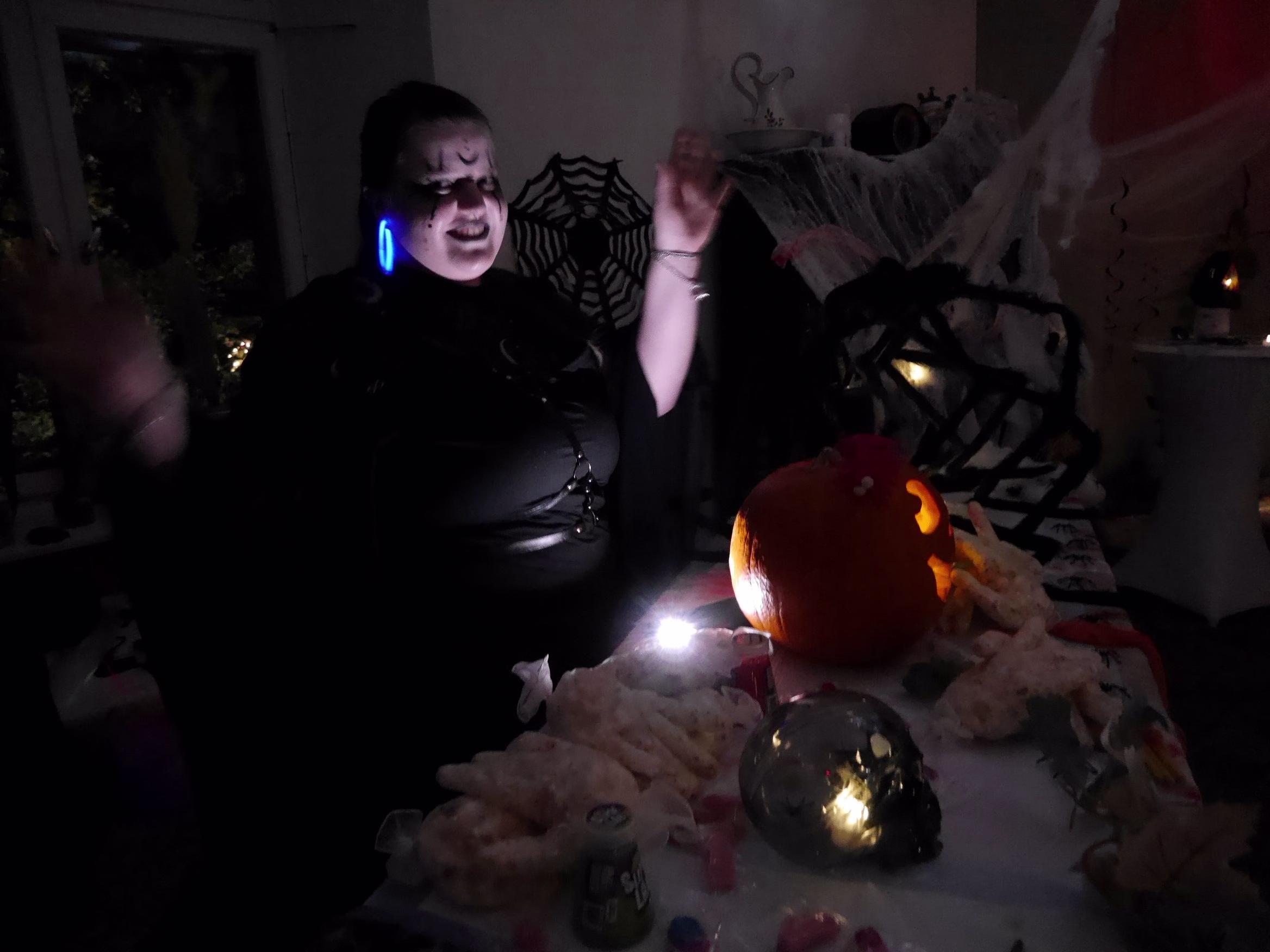Schon lange vor Öffnung der Haustür hatte sich eine lange Warteschlange gebildet, die sich die Zeit aber bei Getränken und Würstchen vom Grill vertreiben konnte. Am Ende hatte die Hexe, die den Eingang überwachte, 358 Spukgestalten gezählt, die sich dieses bisher einmalige Horrorerlebnis in Lanstrop nicht entgehen lassen wollten. Eine für Haus Wenge rekordverdächtige Zahl. Ober-Hexe Sabine Petermann war einfach nur geflasht über den Zuspruch und die vielen positiven Reaktionen:“ Damit hatten wir so nicht gerechnet. Das war ein unfassbar toller Abend. Vielen Dank an das ganze Team, dass das Projekt mit so viel Herzblut und Engagement umgesetzt hat!“