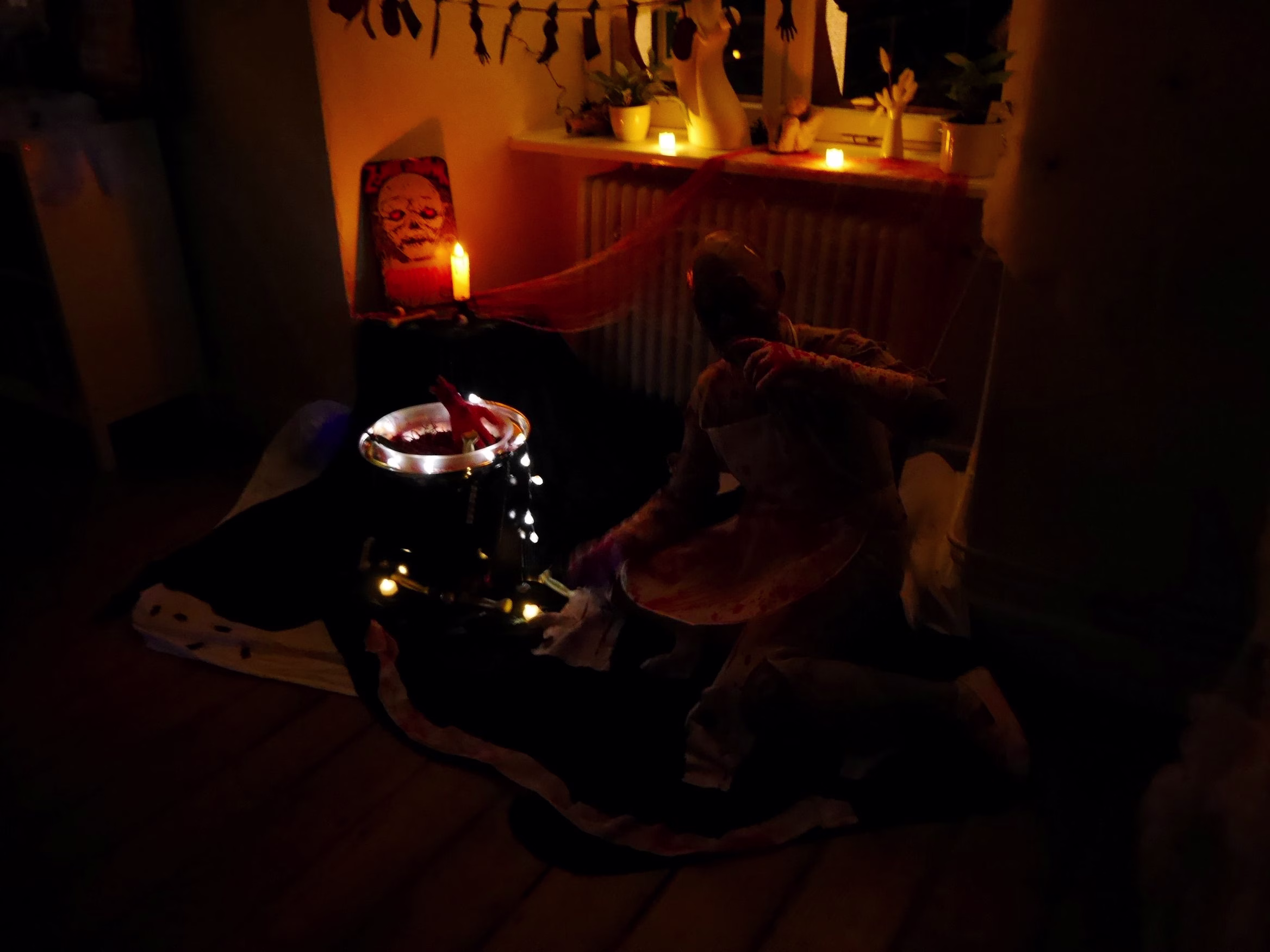 Viele Wochen planten und bastelten die Halloween-Fans regelmäßig in Haus Wenge, um ihre vielen Ideen umzusetzen. Was am Ende dabei herauskam, war ein überwältigendes Horror-Erlebnis, inklusive eines Sonderbereiches für Jugendliche und Erwachsene ab 16 Jahren. Schauerliche Musik, „schwebende“ Kerzen, die an Hogwarts erinnerten, gespenstische Beleuchtung und Lichteffekte, geschickt verteilte Schauergestalten – Hexen, Horrorclowns, Wedneysdays, Zombies -, die plötzlich zum Leben erwachten: Da war alles dabei, was Horrorfans lieben. Wer konnte denn auch ahnen, dass der Sarg sich plötzlich öffnete und eine Hand herausgriff?