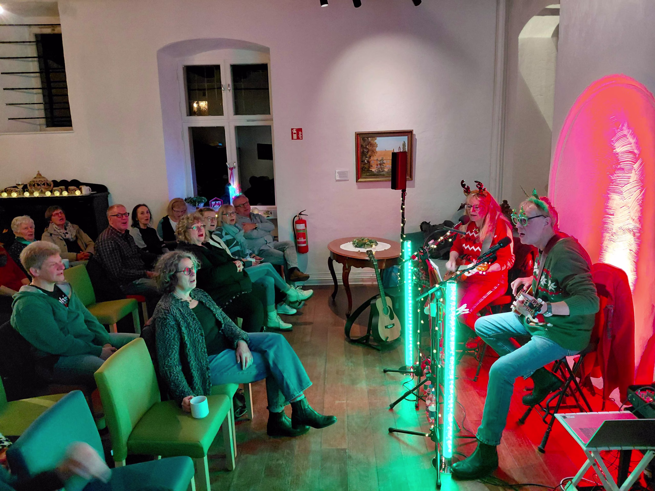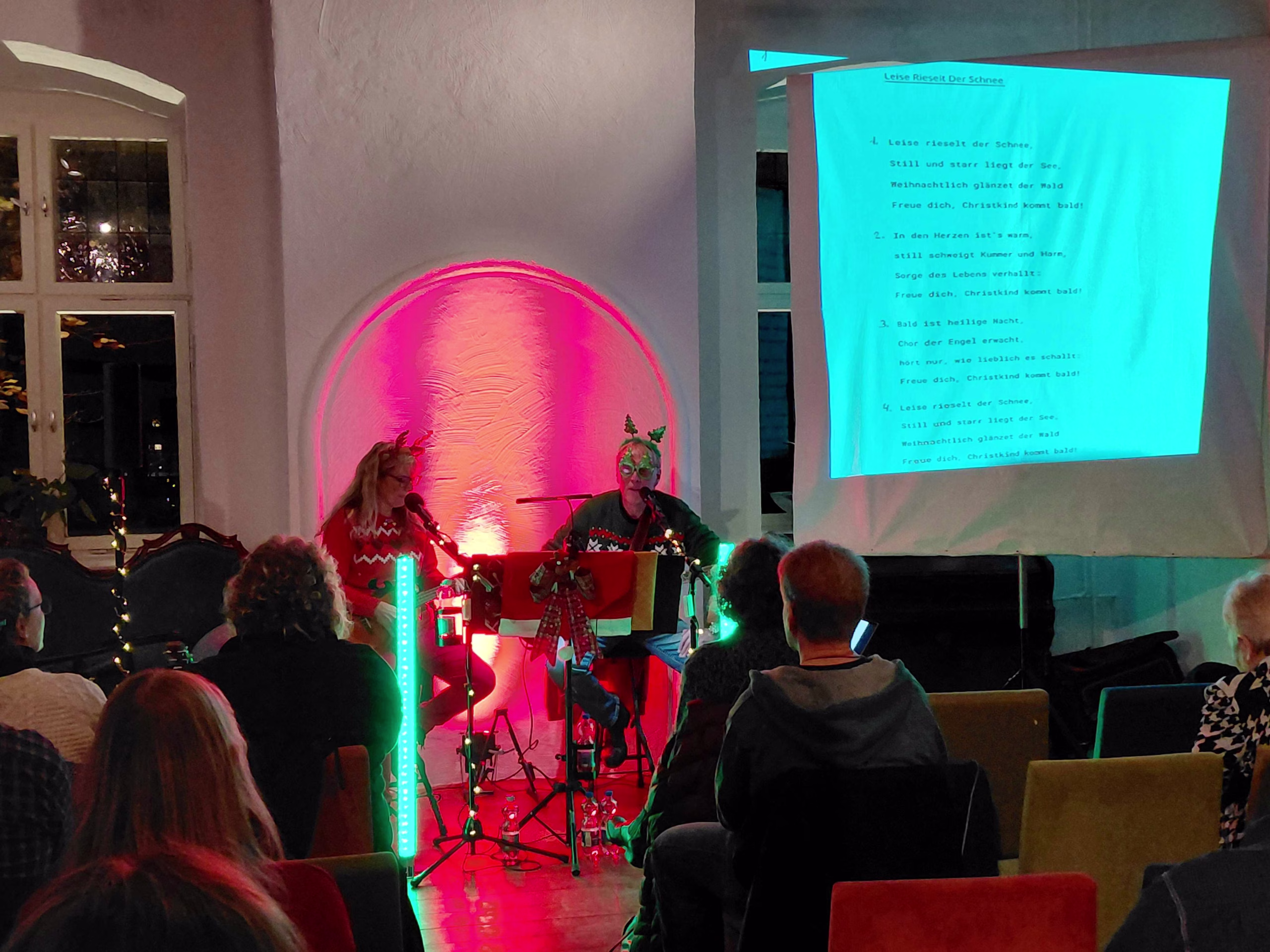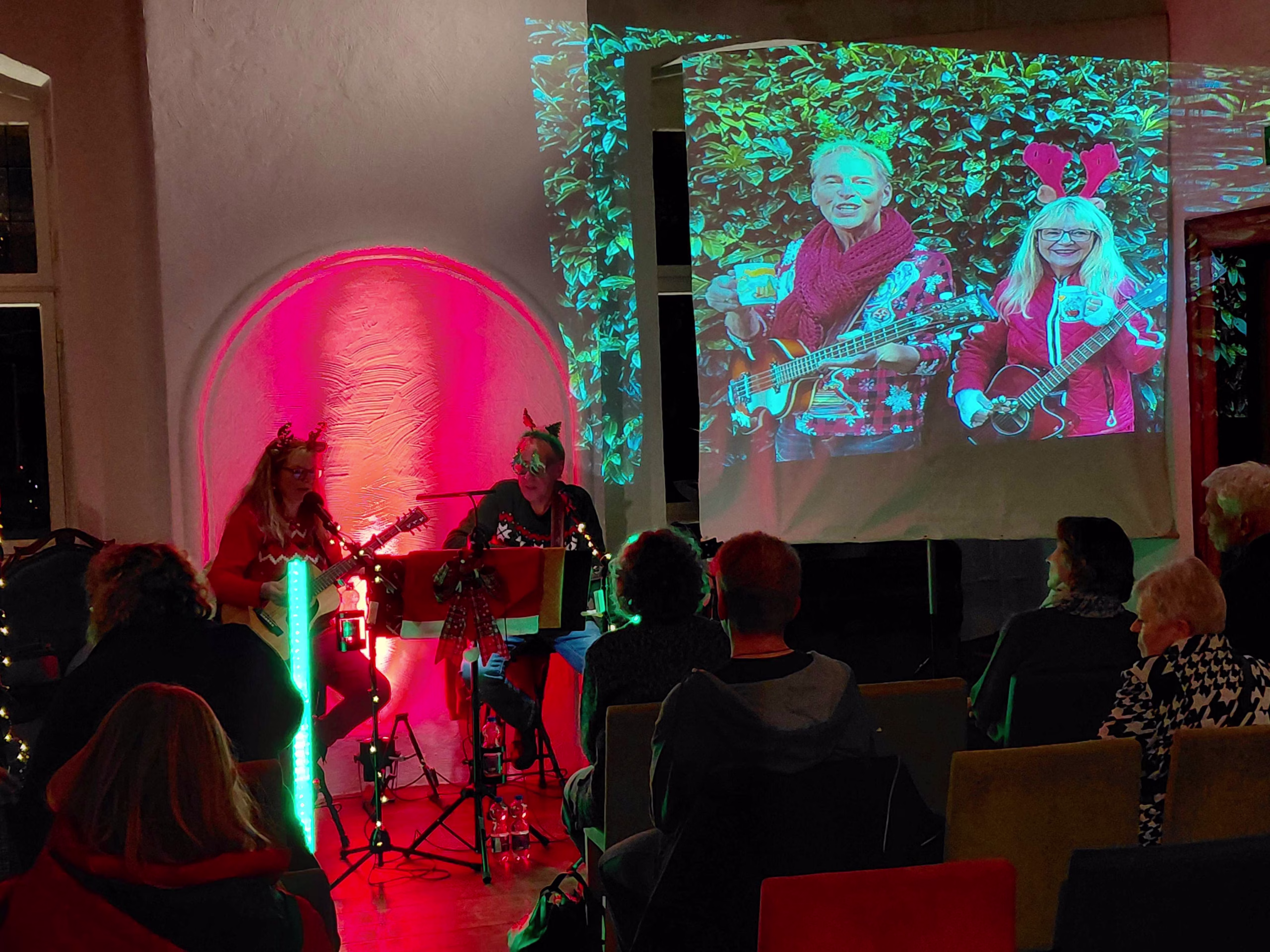 Wie schon im vergangenen Jahr, startete der Haus Wenge Lanstrop Verein mit einem vorweihnachtlichen Rudelsingen im kleinen Saal des Hauses in die Adventszeit. Das Duo „Two strumming KUKies“ – unsere Vereinsmitglieder Kerstin & Klaus – hatten dafür wieder eine Reihe deutscher und internationaler Weihnachtslieder herausgesucht.