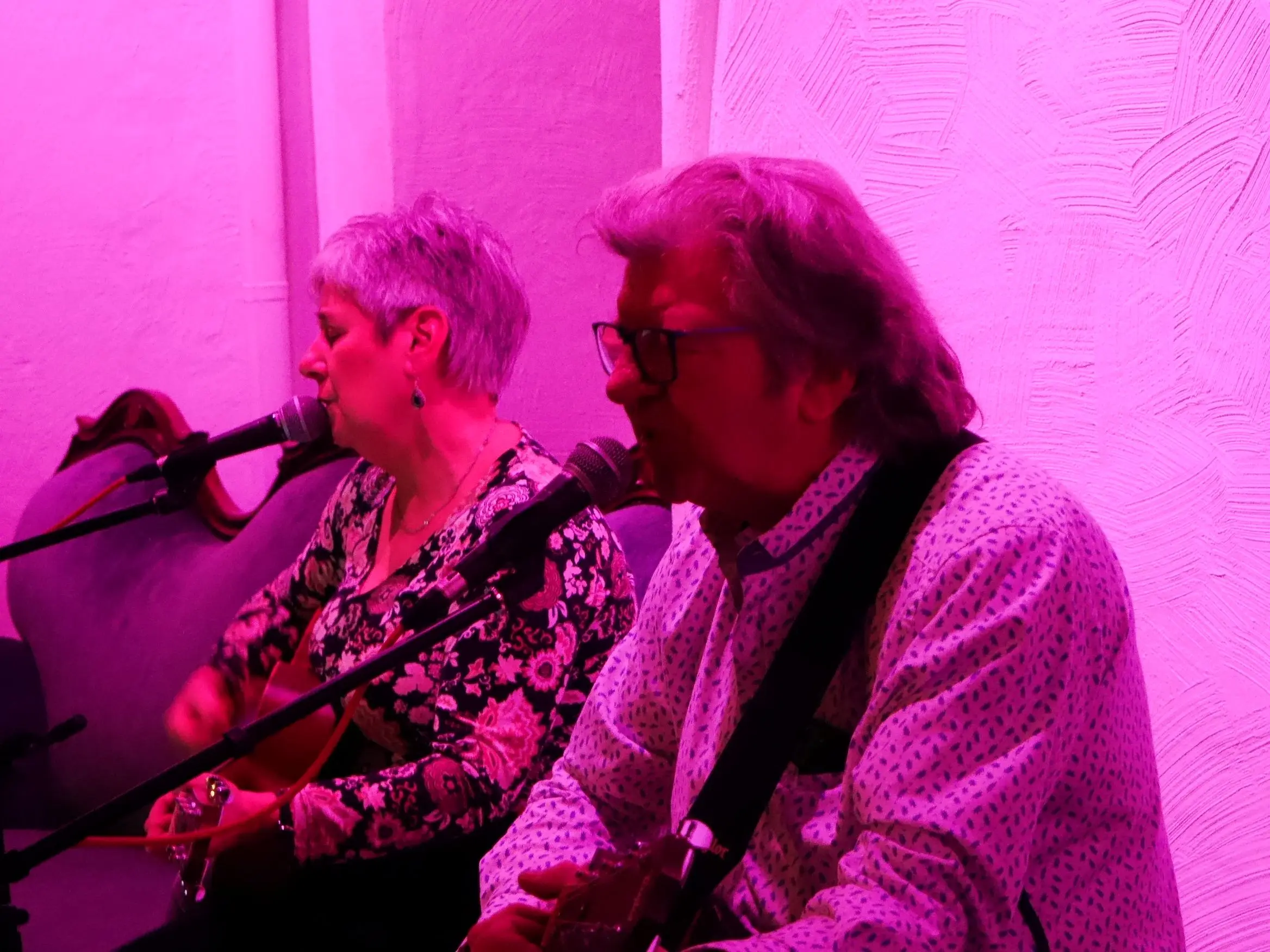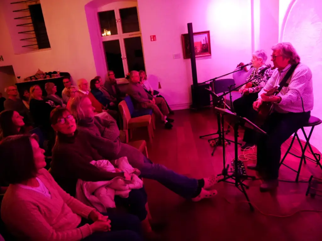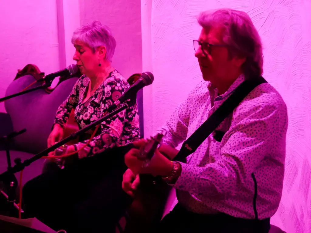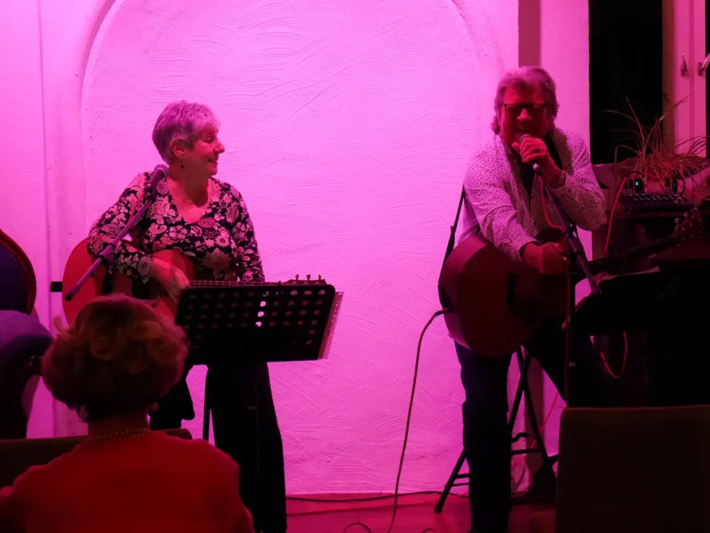 Jetzt, als Duo „Ingi & Mike“, gaben Sie ihre Debüt im voll besetzten kleinen Saal von Haus Wenge. Einfach nur zwei Stimmen und zwei Akustik-Gitarren, die die Wenge-Gäste mitnahmen auf eine Ohrwurm-Reise durch 40 Jahre Musikgeschichte mit sanften Balladen oder rockigen Stücken.
