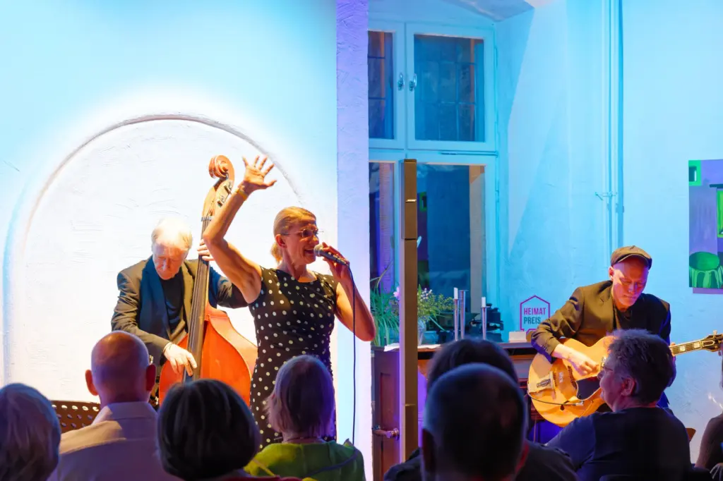 Mit ihrer ausdrucksstarken Stimme und einer gehörigen Portion Charme, Witz und Energie begeisterte sich auch diesmal die Musikfans. Die Spielfreude der Rhythmusgruppe mit Sebastian Bauer (Schlagzeug) und Eric Richards (Bass), das abwechslungsreiche Programm mit Klassikern des American Songbook sorgten wieder für ein rundum gelungenes Konzert.