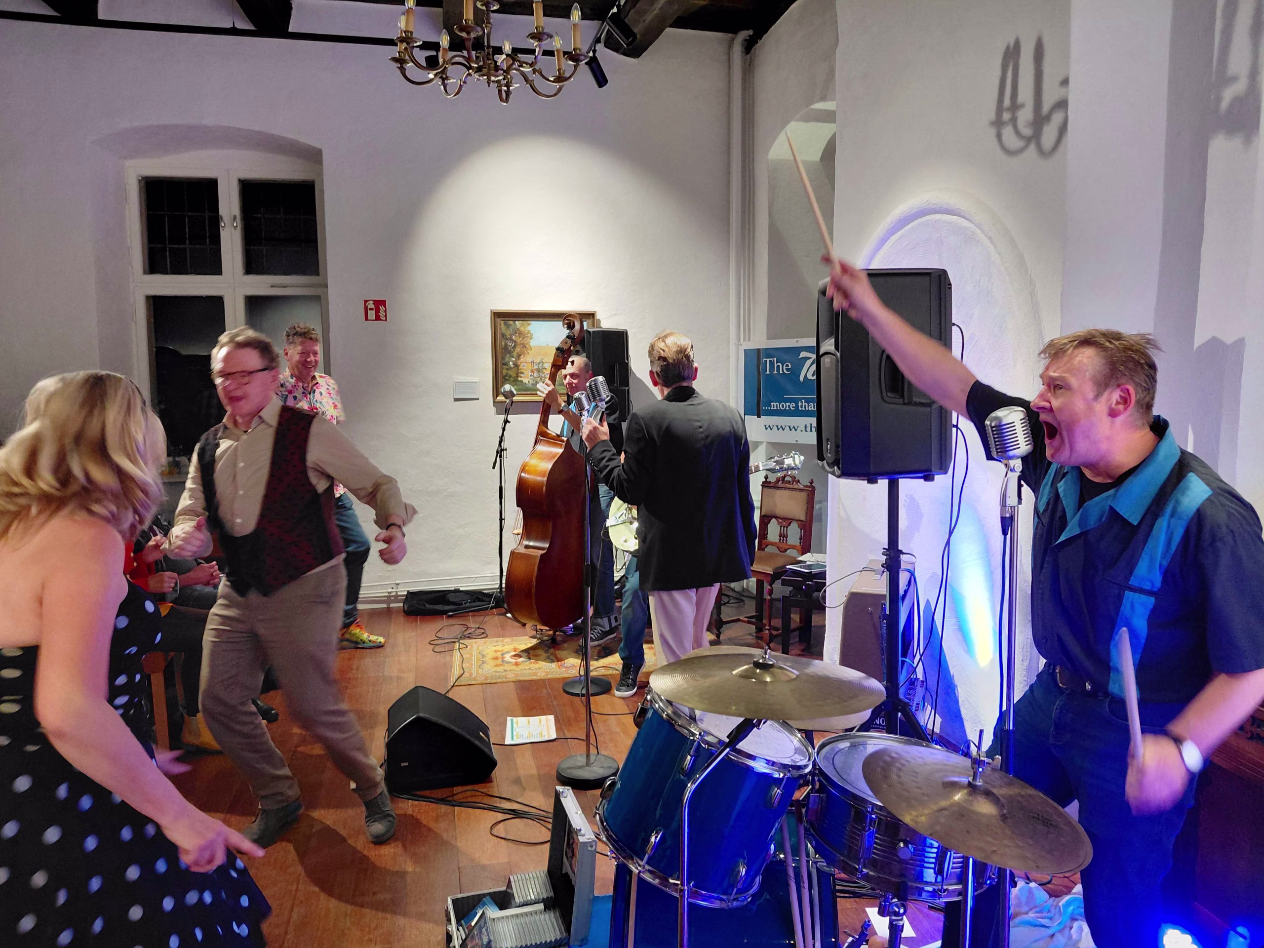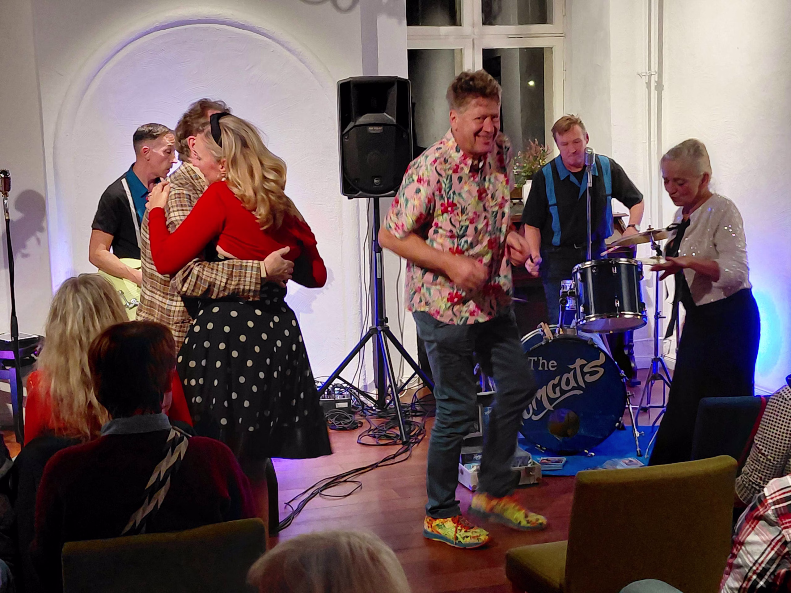 Aber auch die begeisterten Gäste sorgten für einen unvergleichlichen Konzertabend in Haus Wenge. Passend zu den Songs waren viele Gäste mit Karojacken, rauschenden Röcken und wippenden Pferdeschwänzen gekommen und rockten und twisteten direkt los. Das hatte in dieser Form Haus Wenge noch nicht erlebt. Schon in der Pause sorgten die Wenge-Organisatoren deshalb für klare Verhältnisse: Jürgen Weber & The Tomcats kommen im Sommer zurück! Open Air auf der Außenbühne und dementsprechend größerer Tanzfläche soll es direkt noch einmal auf eine tolle musikalische Zeitreise gehen. Der Termin wird rechtzeitig bekanntgegeben.