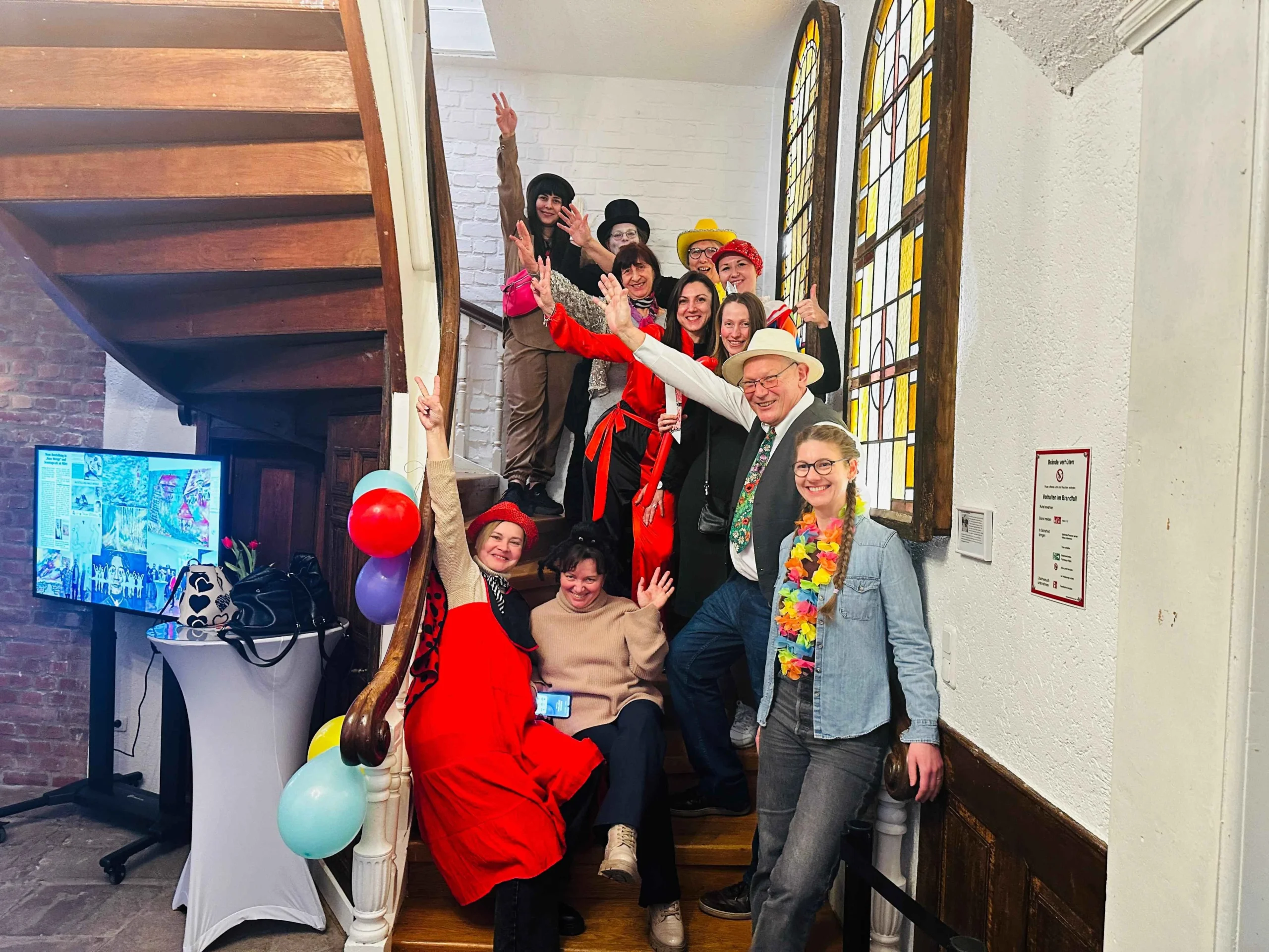 Wie feiern wir in Deutschland Karneval? Verkleiden, Tanzen, Polonaise, Kamelle schmeißen, Berliner essen gehören ja bei uns dazu. Und genauso feierten jetzt Kinder und Erwachsene aus verschiedenen Kulturen dieses traditionelle Fest im Haus Wenge. Für Staunen bei den kleinen und großen Jecken sorgte auch die Schau der Zauberin Parella. Bei der nächsten Veranstaltung der Reihe „Ausflüge und Feste für neu angekommene Familien“ wird das Zuckerfest gefeiert. Eingeladen sind dann eben auch nicht nur Muslime, sondern alle neugierigen Menschen. Da die Teilnehmerzahl begrenzt ist, ist eine Anmeldung unter: