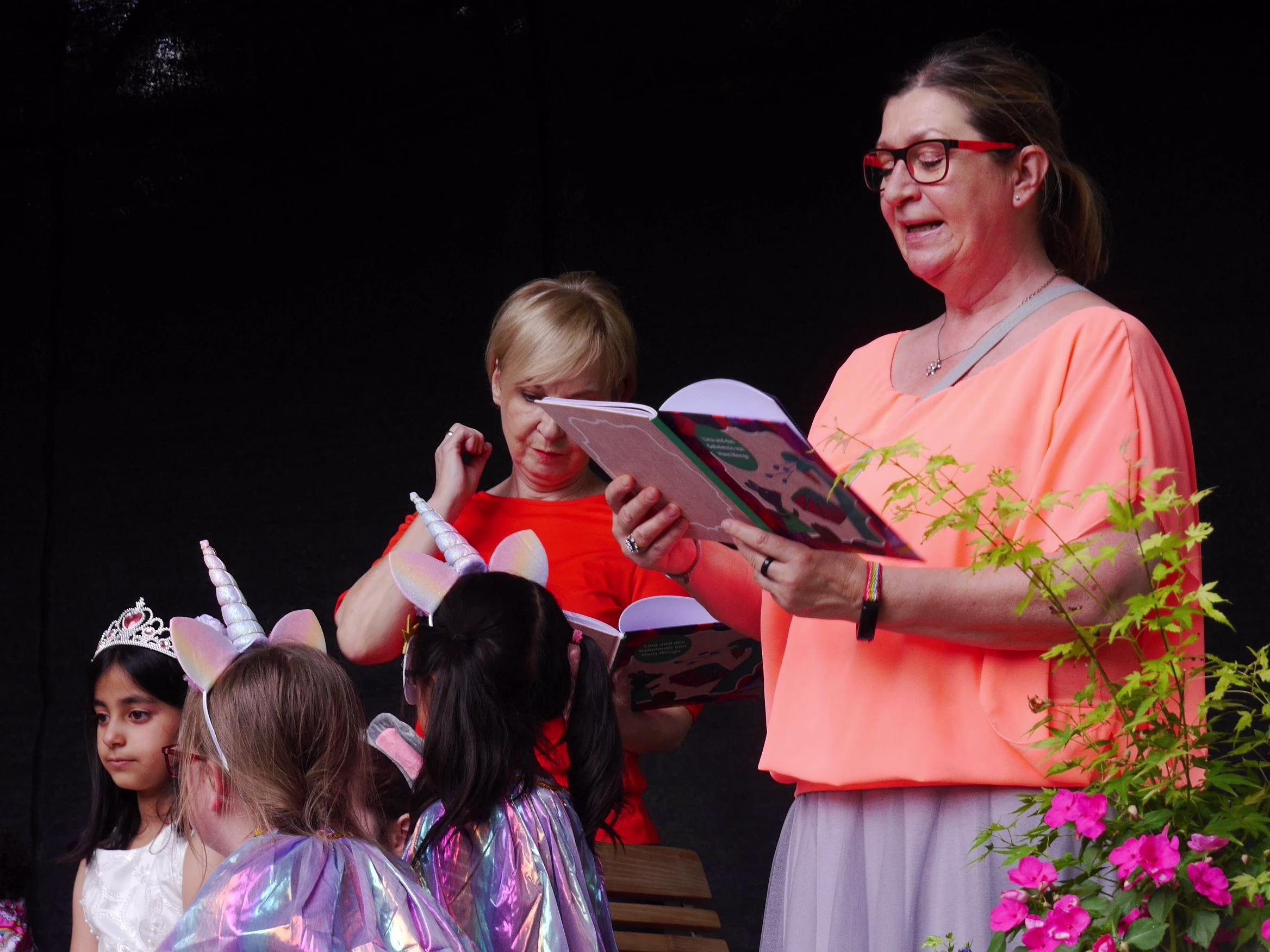 Buchpremiere von „Lina und das Geheimnis von Haus Wenge„. Viele Stunden haben die Künstlerin Sabine Leven und die Lese- und Literaturpädagogin Heike Wulf mit Kindern der Brukterer Grundschule zusammen gesessen und darüber gesprochen, was eine gute Geschichte ausmacht und wie man Gefühle dabei ausdrückt. Sabine Leven hat obendrein als Künstlerin die Kinder beim Zeichnen unterstützt und dabei sind wunderbare Illustrationen herausgekommen.