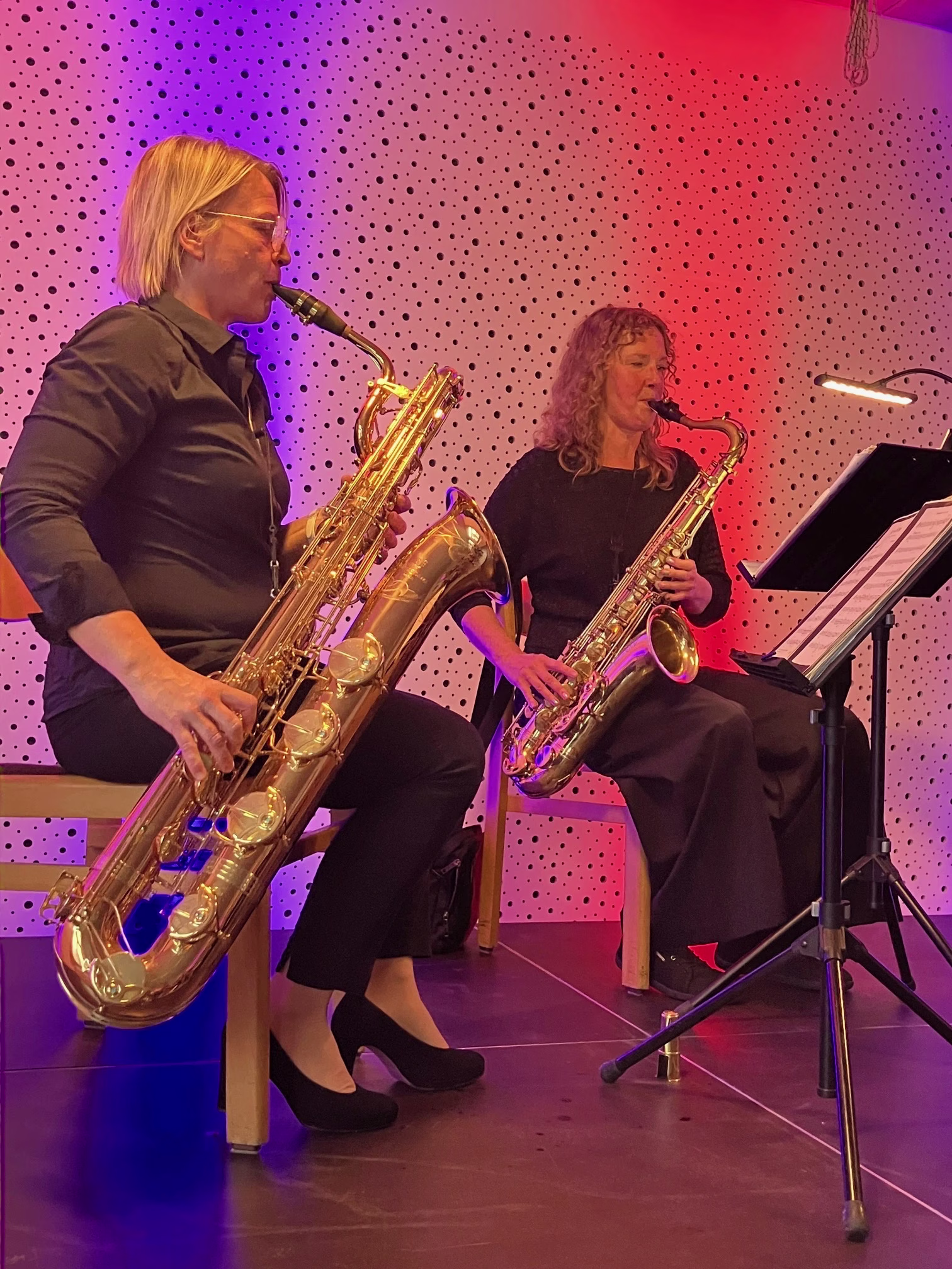 Unter keinem ganz so guten Stern stand der Auftritt des Saxophone-Quartetts „Lilith“ am Samstagabend. Das Wetter machte eine Verlegung vom Wengevorhof in das benachbarte katholische Pfarrheim notwendig. Danke an dieser Stelle an die katholische St. Michael-Gemeinde! Aus dem Damen-Quartett wurde dann ein Trio mit männlicher Verstärkung. Das Quartett besteht eigentlich aus Ilona Haberkamp – Sopran Saxophon, Karin Hatzel – Alt Saxophon, Nikola Seegers – Tenor Saxophon und Catrin Groth – Bariton Saxophon. Für die leider erkrankte Ilona Haberkamp musste ihr Mann Thomas einspringen. Und so ging es dann auf einen musikalischen Streifzug durch verschiedene Länder und Zeiten der Musikgeschichte, der die Gäste begeisterte.