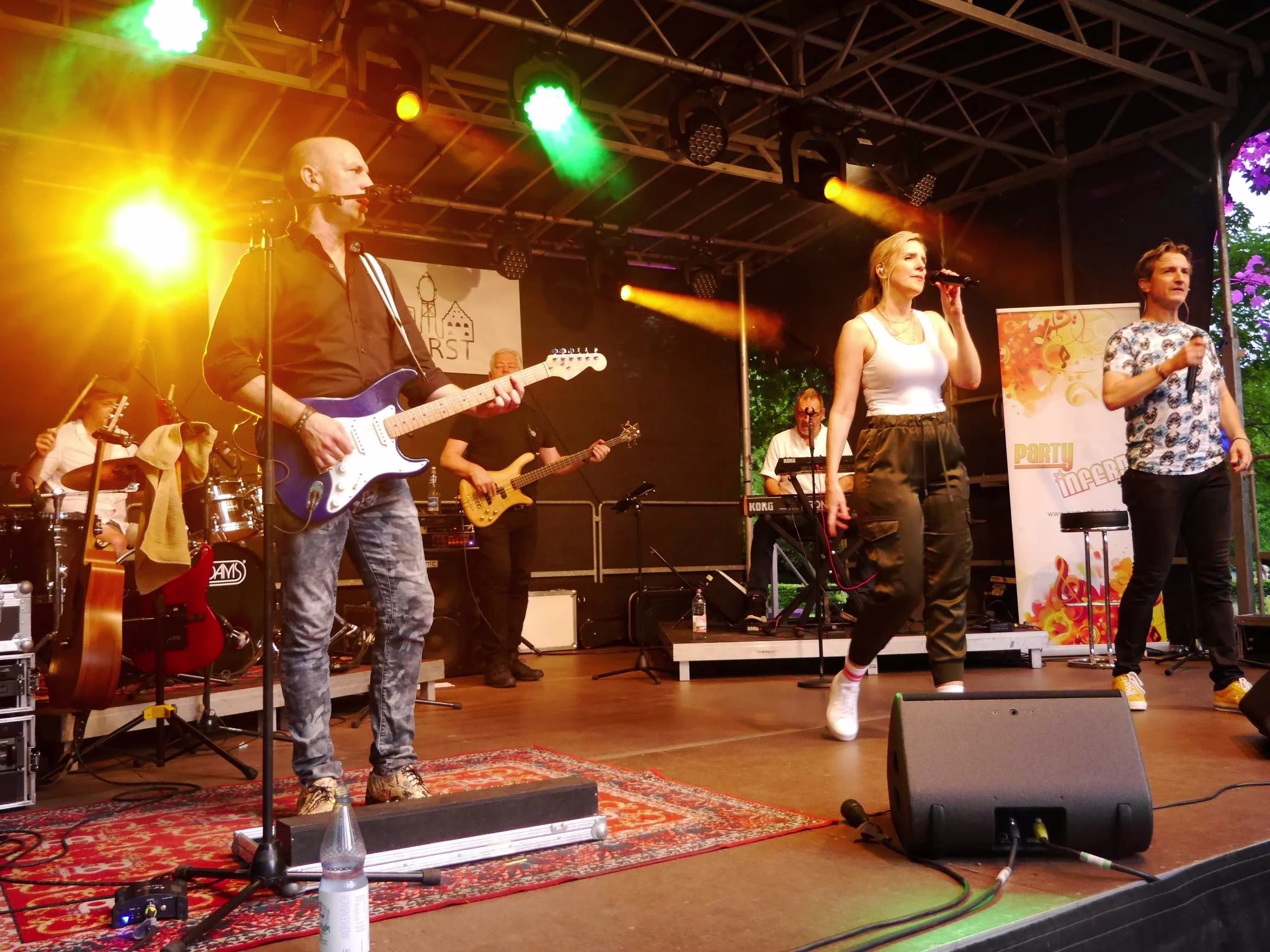 Der musikalische Staffelstab wurde von Jürgen Weber dann – mit dem Song „Great balls of fire“ – an „Partyinferno“ übergeben. Die professionell agierenden Musiker und ihre Sängerin verfügen über die Erfahrung und Fähigkeiten jede Party in einen Hexenkessel zu verwandeln. Das bewies „Partyinferno“ auch in diesem Jahr wieder.