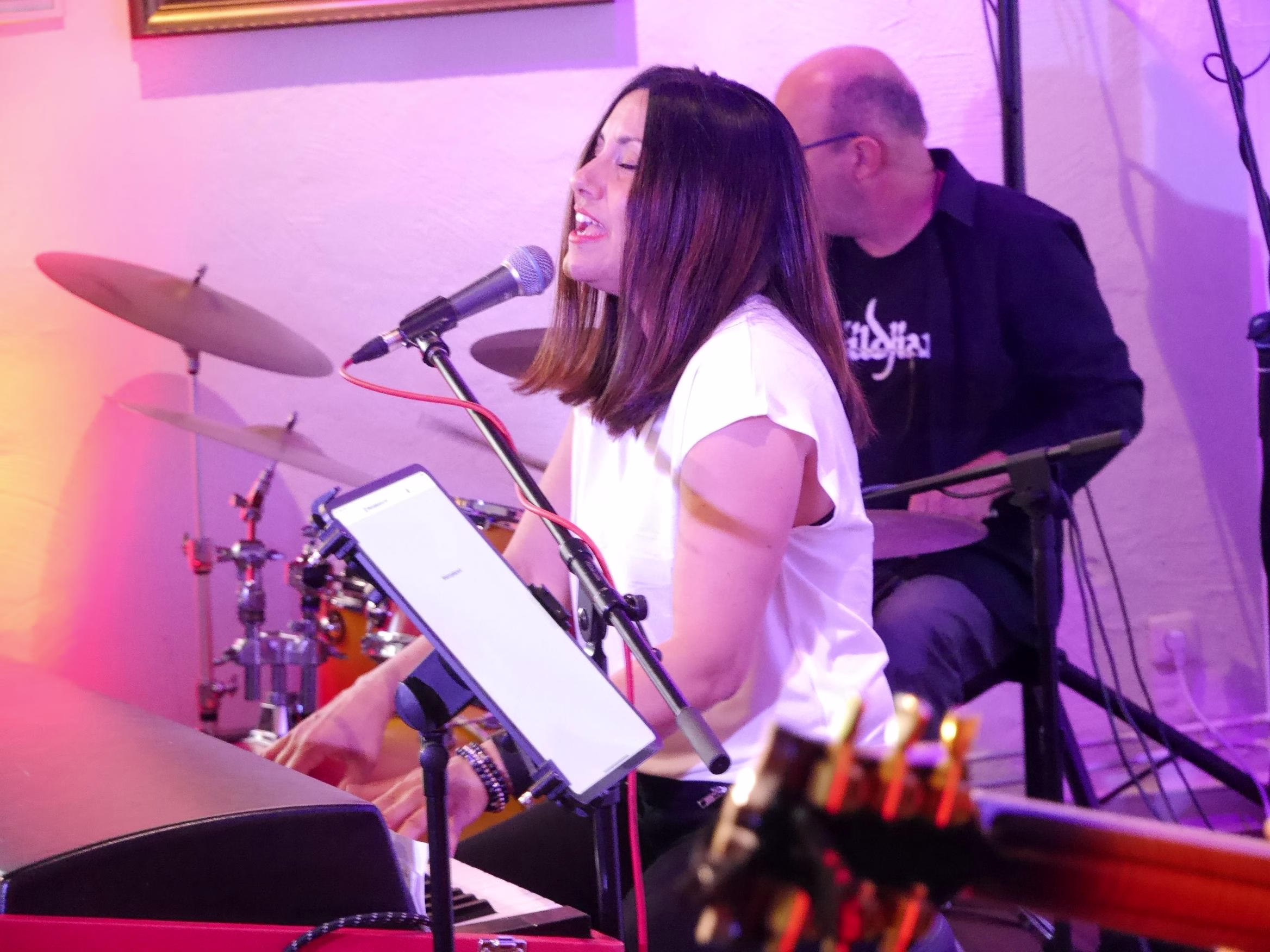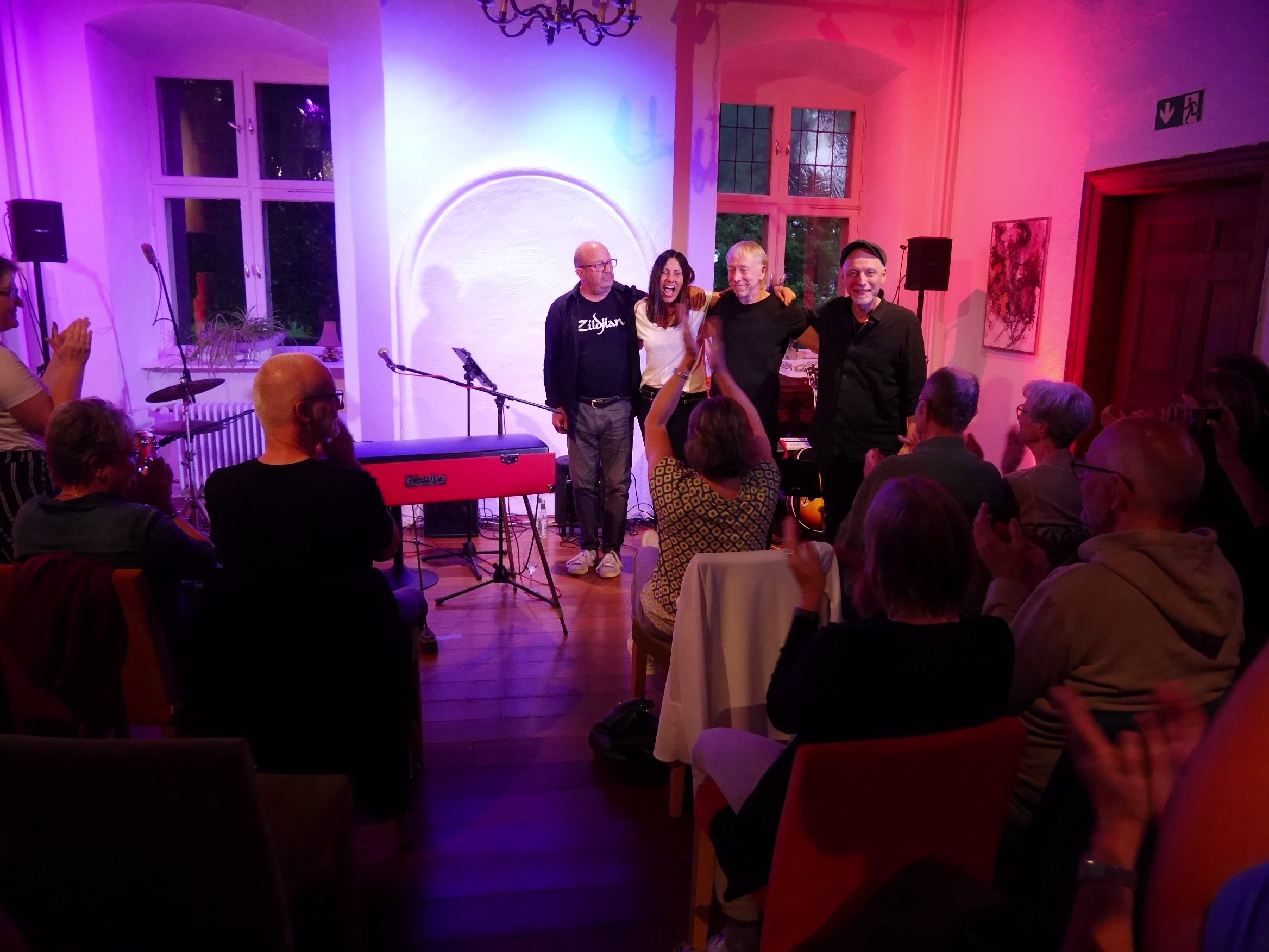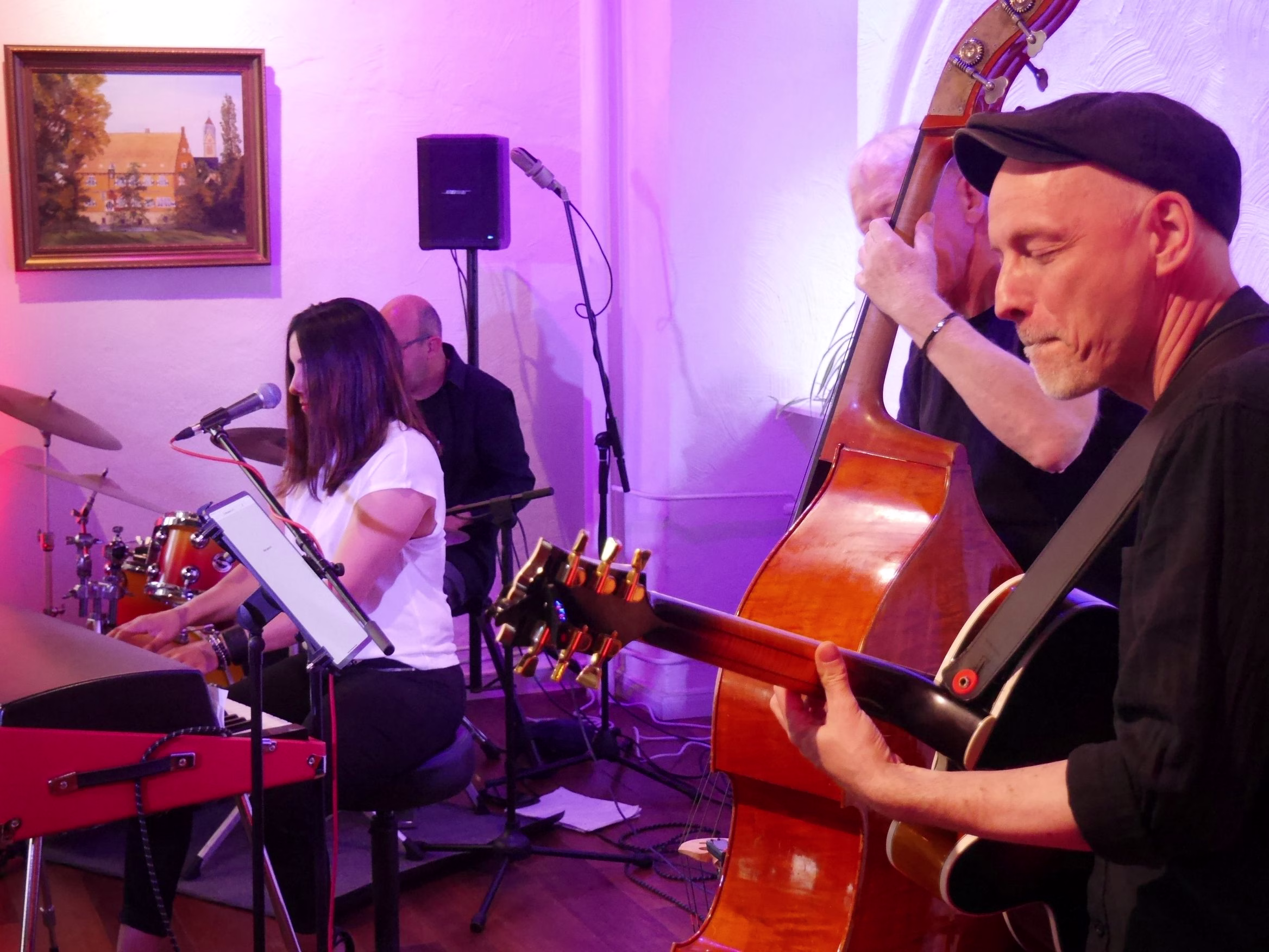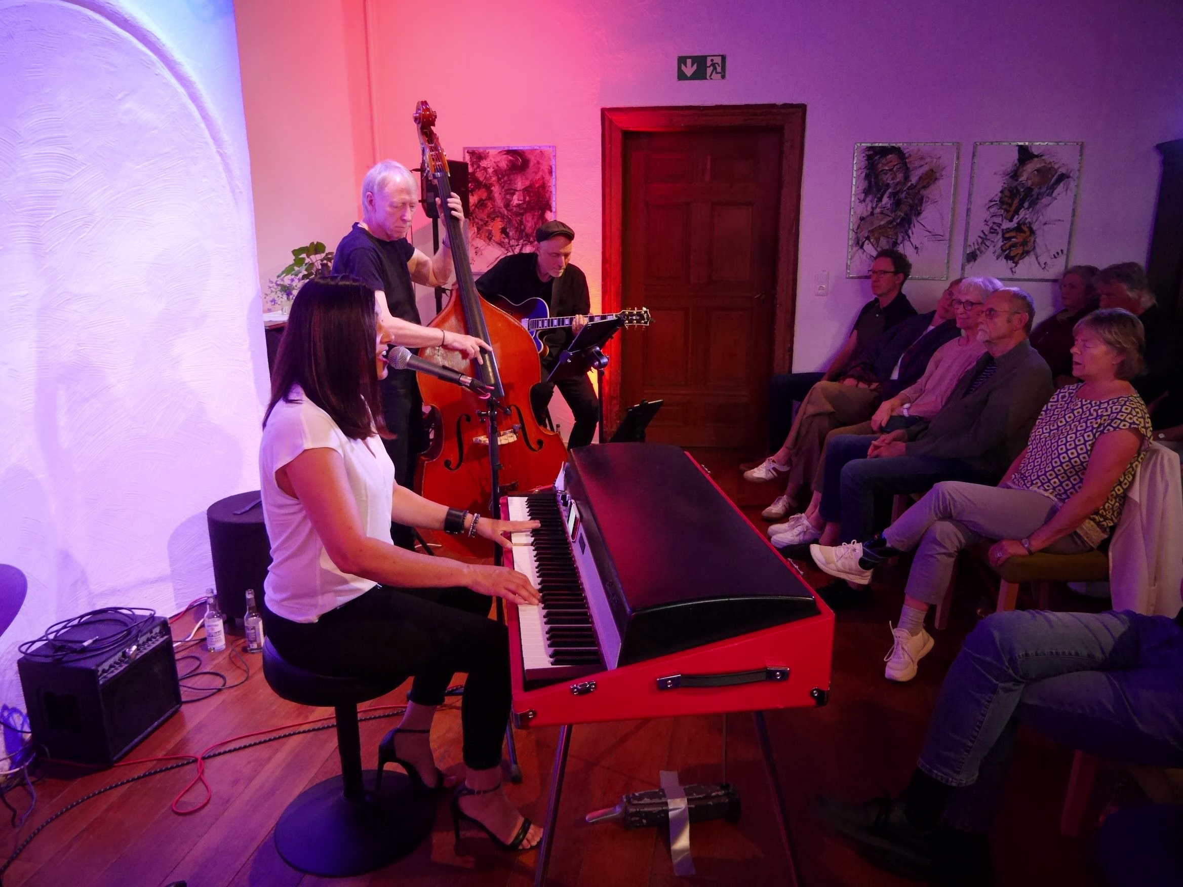 Die Pianistin und Songwriterin fesselte mit ihrer charismatischen Ausstrahlung auch schnell die Wengegäste. Ihre ausdrucksstarke Stimme zwischen Soul, Jazz und Pop verursachte Gänsehaut-Feeling. Begleitet wurde sie von Eric Richards am Bass, Andrè Spajic am Schlagzeug und – natürlich vom musikalischen Organisator dieser Musikreihe – Jan Bierther an der Gitarre.