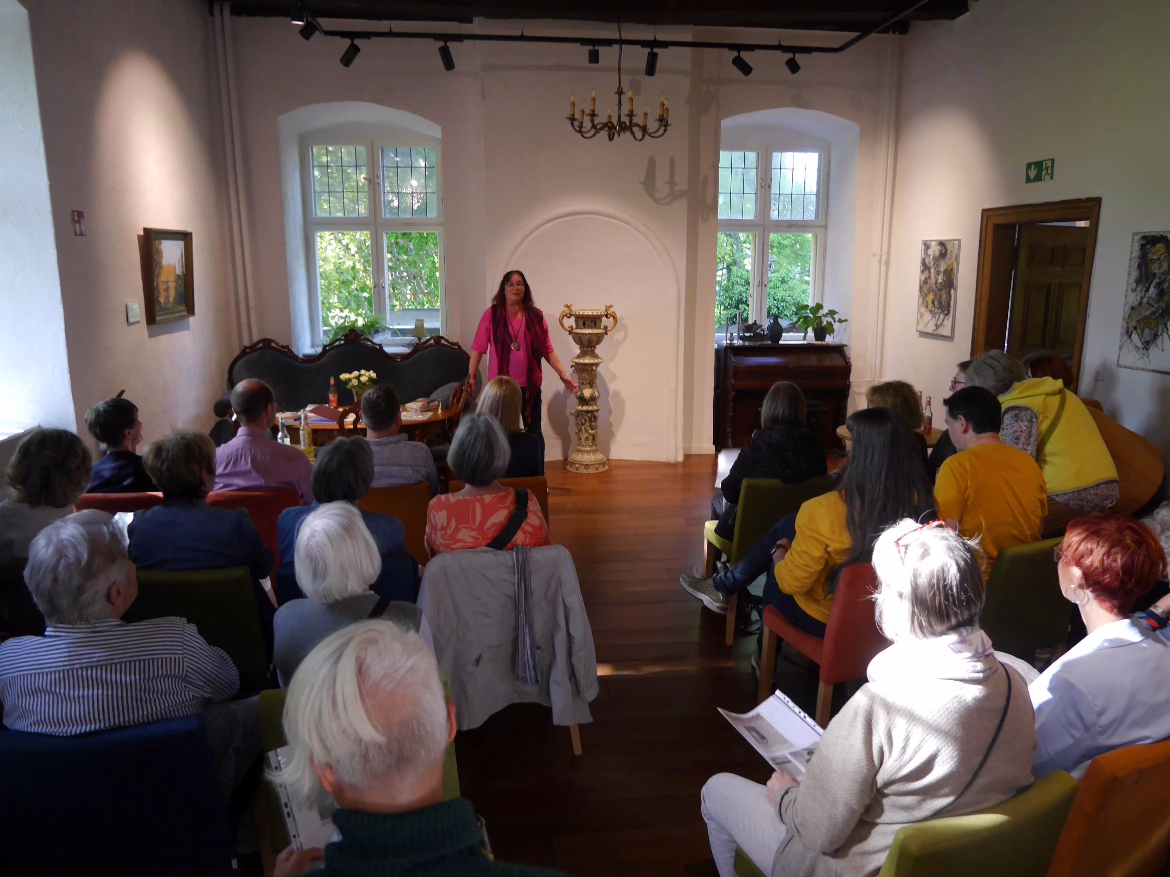 Ein Streifzug durch 25 Jahre als Autorin mit Anne-Katrin Koppetsch gab es beim Literaturabend in Mai. Seit dem Jahr 2000 lebt die evangelische Theologin – gerne – in Dortmund. Derzeit arbeitet sie als Pfarrerin in der evangelischen Noah-Kirchengemeinde Dortmund. Ihr Markenzeichen: Personen – oft Theologinnen – die unvermittelt über Leichen stolpern und wider Willen anfangen, zu ermitteln. Spannend, amüsant, mit leichter Hand und Fachkenntnis erzählt sie ihre Geschichten. „Ein gelungenes Zeitbild, ein spannender Mordfall, eine interessante Heldin“, urteilte Krimi-Experte Reinhard Jahn auf WDR 5 über Koppetschs 60er-Jahre-Krimi „Kohlenstaub“. In „Mordsoper“, Koppetschs ersten Krimi bei OCM, ermitteln mit Hendel & Häldin nun erstmals eine Trauerrednerin und ein Professor, den ein Schicksalsschlag in den Rollstuhl gebracht hat. Was passiert, wenn man in der Mitte des Lebens noch einmal neu anfängt?