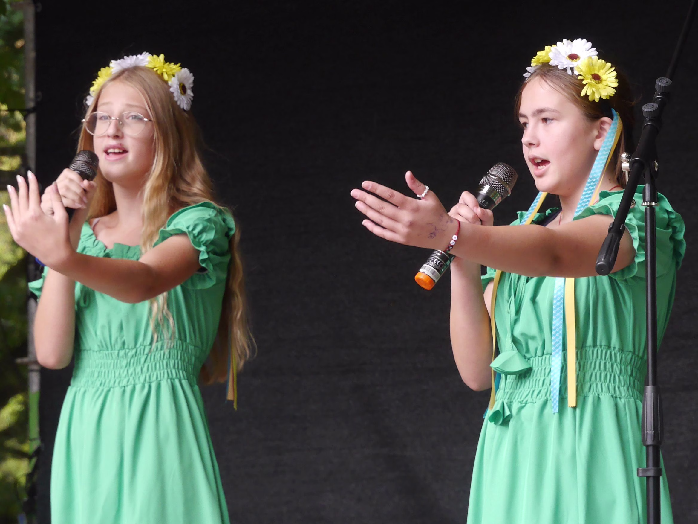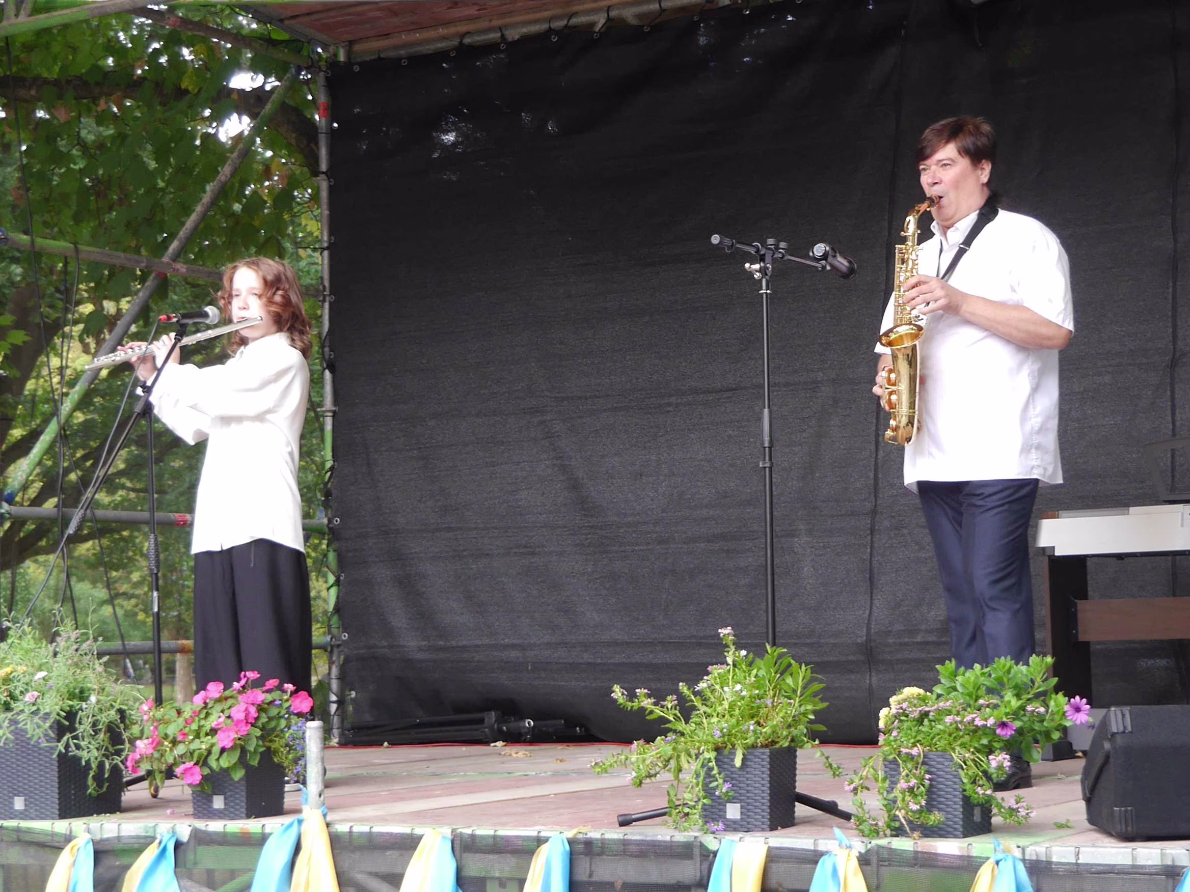 Einen ersten Einblick lieferte dafür die Kunstausstellung „Farben des Duftes“. Was dann folgte, war ein furioses Programm aus Gesang, anspruchsvollen tänzerischen Einlagen der Tanzgruppe „Soul in Motion“ oder- wie im Fall von Arina und Serhij Jasynskyj – populärer Musikstücke mit Saxophon und Querflöte. Beendet wurde dieser Nachmittag mit dem Auftritt von Mira und Alex, die als Duo „Luxarion“ die zahlreichen Gäste begeisterten.