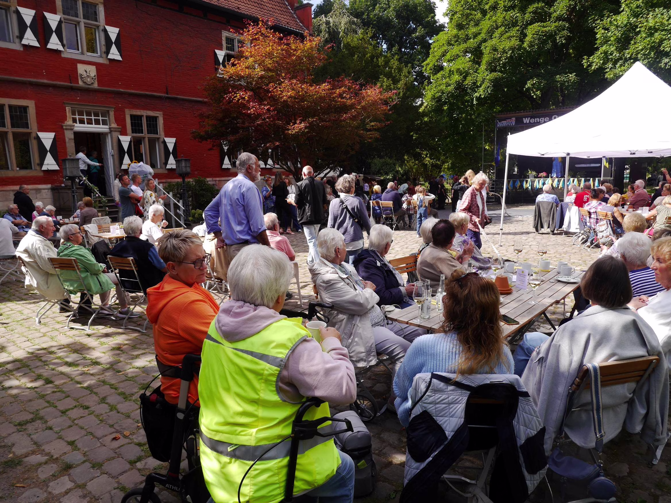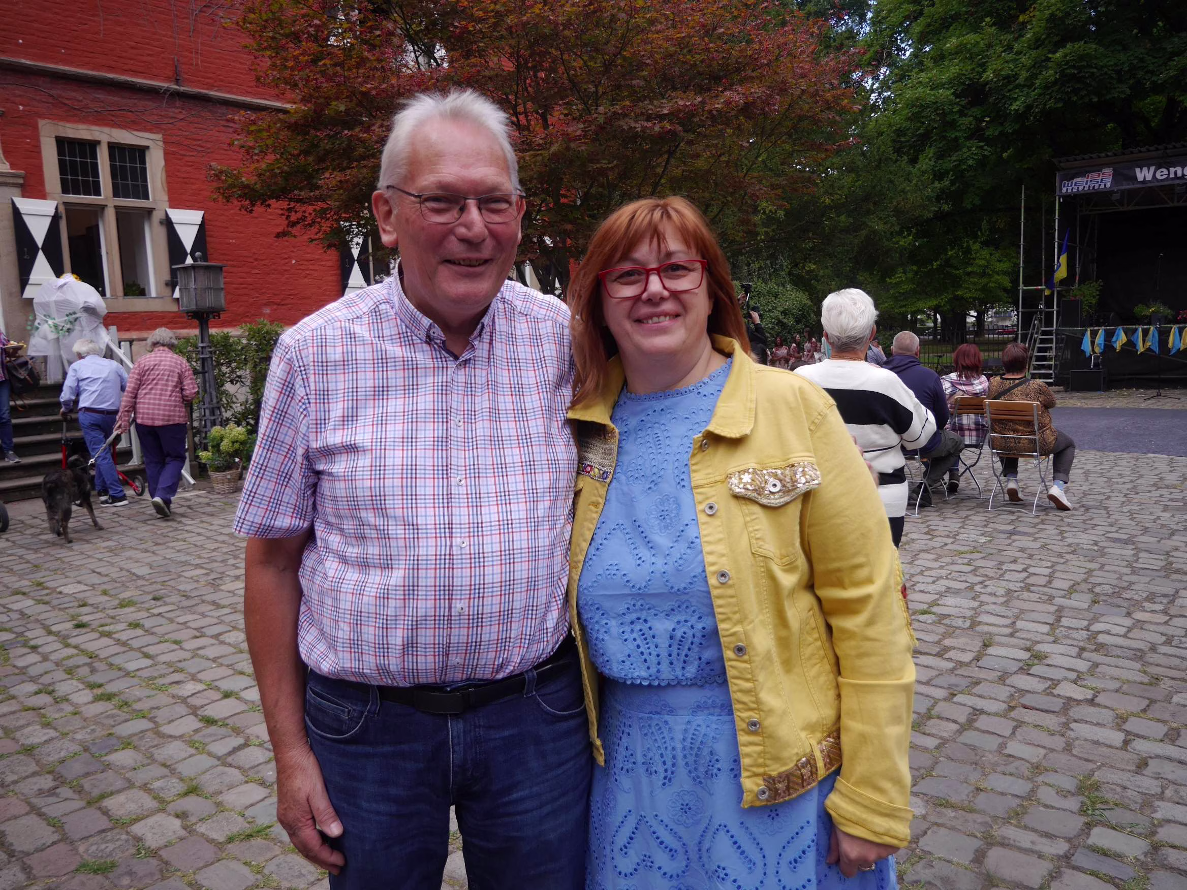 Einen lockeren Kontakt hatten Franz-Josef Nienhaus von der Lanstroper Initiative Angekommen und Olga Rudi, Vorsitzende des Lüner Vereins „Mrija“, schon seit einiger Zeit. Doch jetzt ging es ganz schnell, als man beschloss: Den Unabhängigkeitstag der Ukraine feiern wir am 24. August gemeinsam an Haus Wenge. Der Verein aus Lünen stellte dafür ein Programm zusammen und die Initiative Angekommen von Haus Wenge lieferte mit dem sonntäglichen Café und der Außenbühne, im Vorhof von Haus Wenge, den Rahmen.
