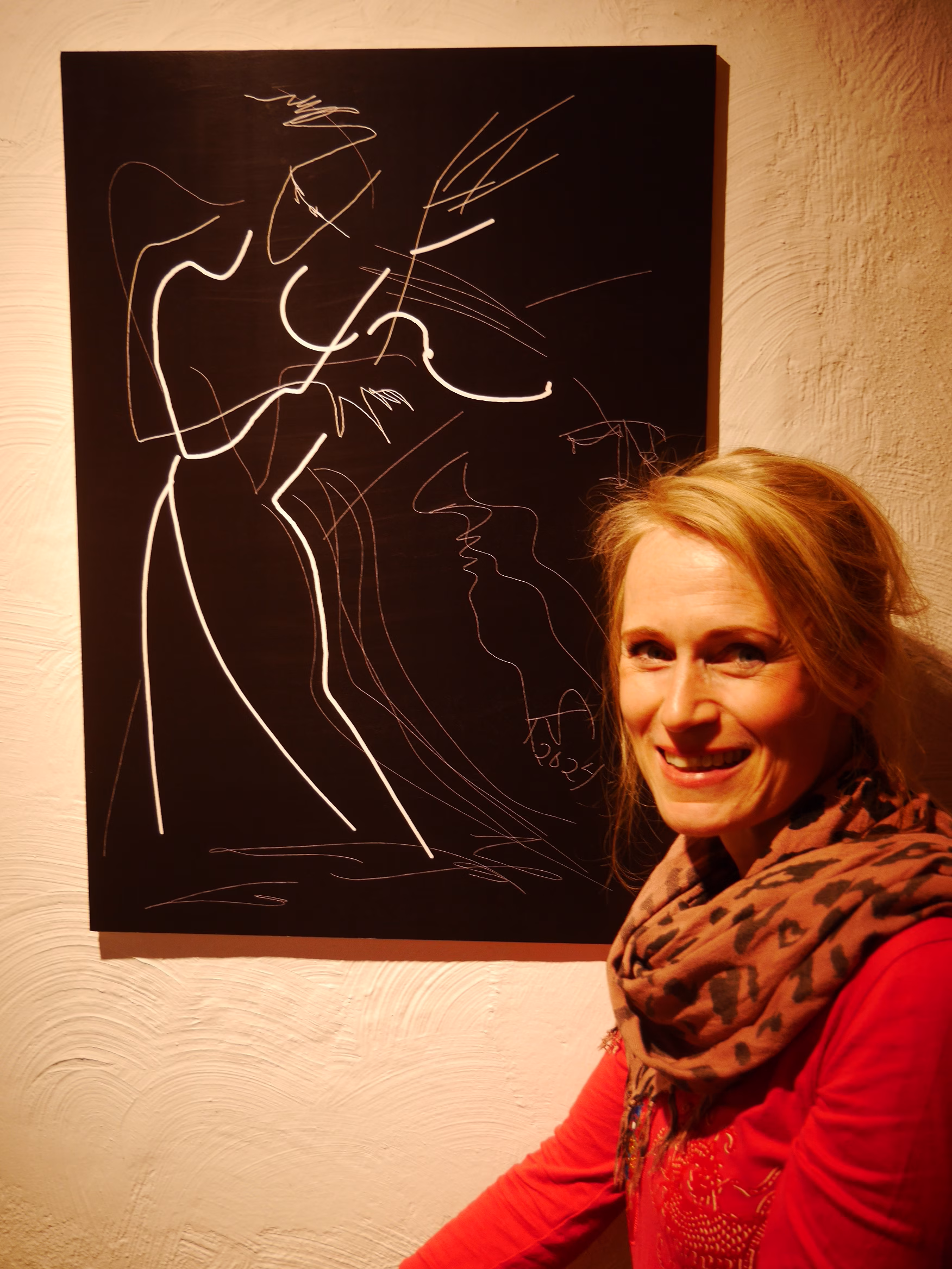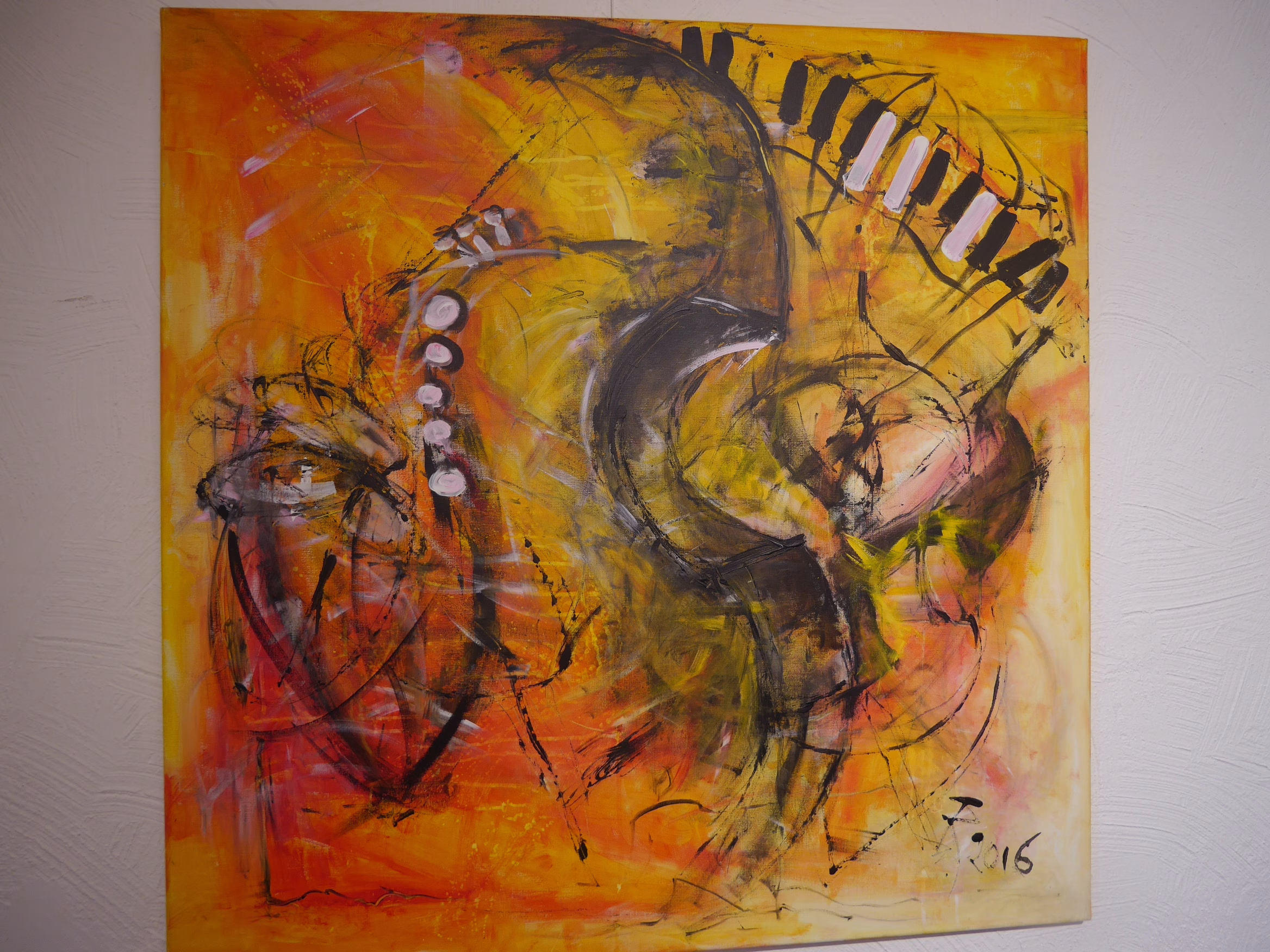 Die Musik verbindet die beiden Künstler, die von Mai bis Ende Juli in der Galerie Wenge ausstellen. Die gebürtige Finnin Sinikka Airaksinen-Rade aus Witten mit ihren Bildern und der Dortmunder Fotograf Joe Möller stellen in dieser Zeit gemeinsam in Haus Wenge aus. Sinikka nennt ihre Arbeiten „Jazz Impressionen“, die sie während Konzerten, z.B. im Dortmunder Domicil oder des Moersers Jazzfestival angefertigt hat. Sie spürt die Musik während des Hörens und lässt die Musik auf der Leinwand weiterspielen.