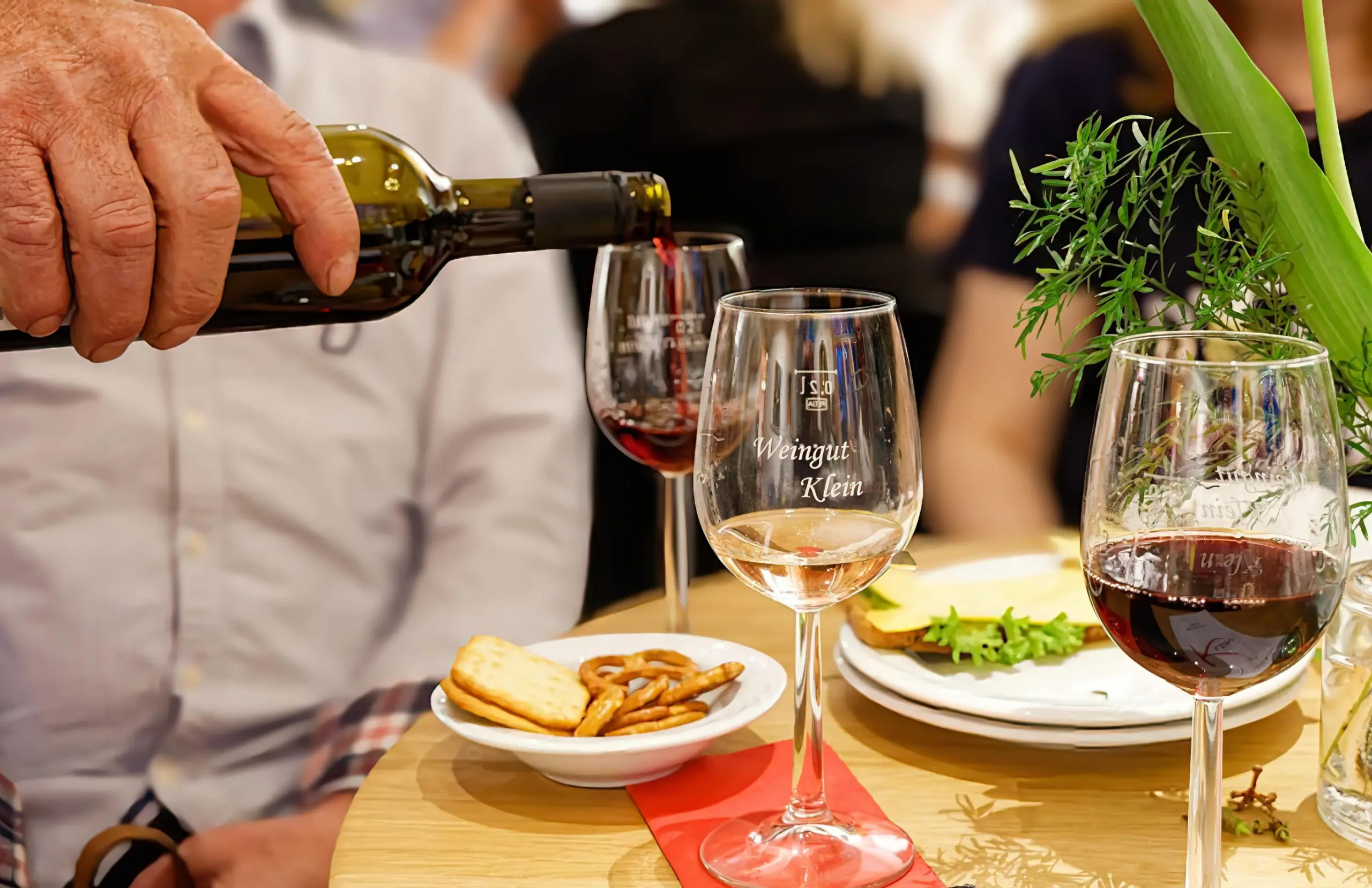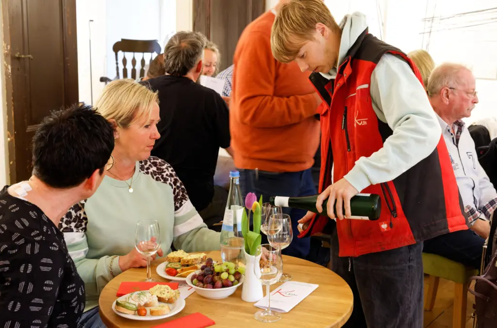 Beide stellten auf Einladung, im natürlich ausgebuchten Haus Wenge, nicht nur viele verschiedene Weine – außerhalb des normalen Wengeangebots – und das Weingut Klein vor, sondern lieferten auch spannende Geschichten zu den verschiedenen Rebsorten und die nachhaltigen Techniken der Herstellung.