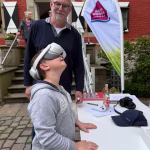 Auf großes Interesse – gerade bei jüngeren Gästen – stieß das VR-Projekt „Wenge-Dachboden“ , das man am Infostand des Wengevereins ausprobieren konnte. „Ich habe zum ersten mal so eine Brille auf. Das ist ja toll, wie realistisch der Gang über den Dachboden, so wie er vor 100 Jahren ausgesehen hat, geworden ist!“, war eine sehr häufige Reaktion.